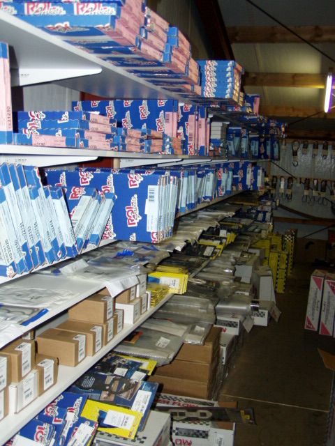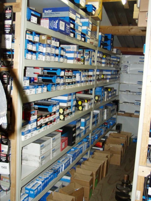 Een grote voorraad onderdelen liggen klaar voor je auto.